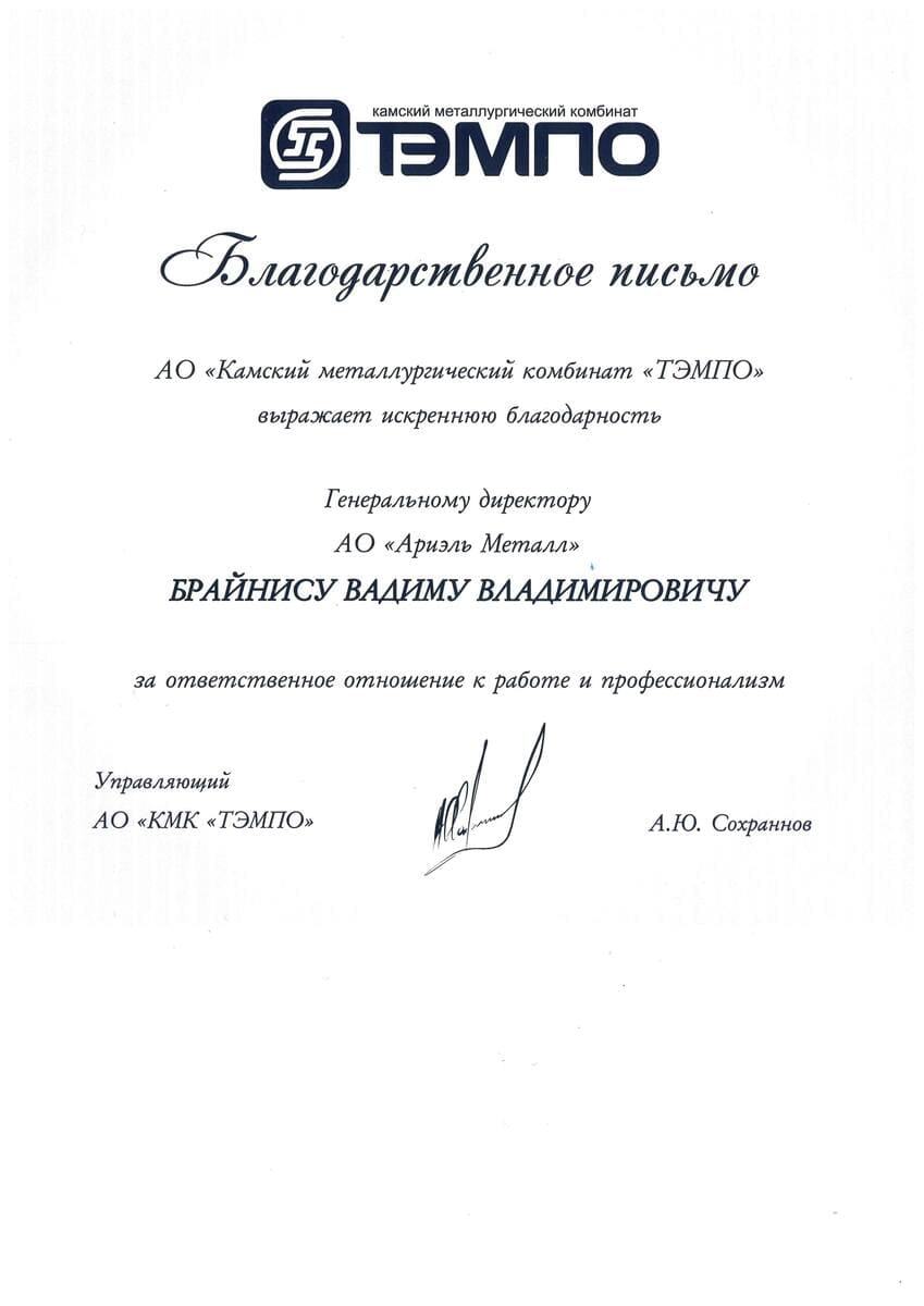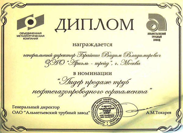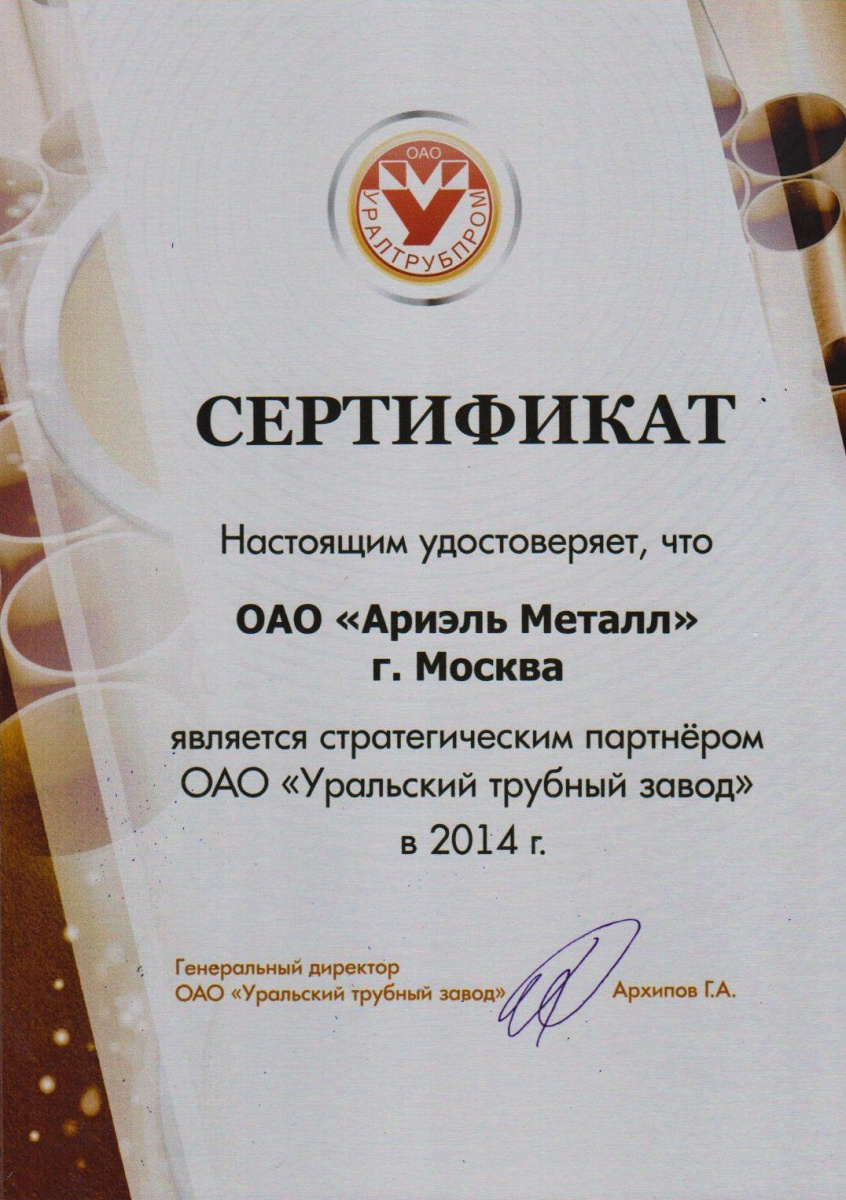 ОАО «Ариэль Металл» является стратегическим партненром ОАО «Уральский трубный завод» в 2014 году