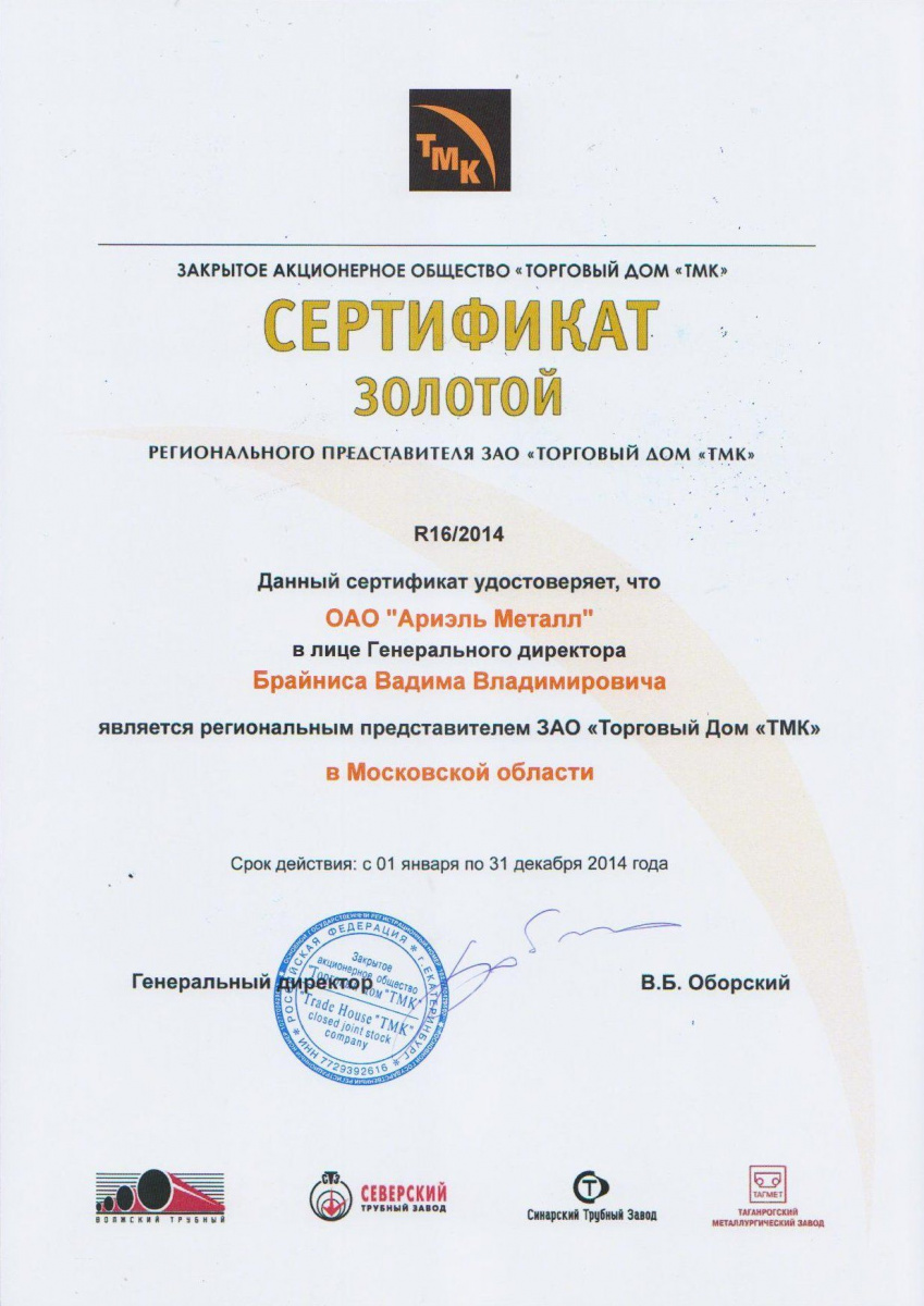 ОАО «Ариэль Металл» является региональным представителем ЗАО «ТОРГОВЫЙ ДОМ ТМК в Московской области