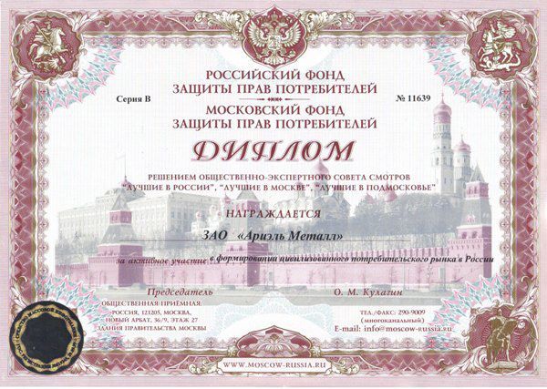 За участие в формировании цивилизованного потребительского рынка в России, Российский и Московский фонды защиты прав потребителей